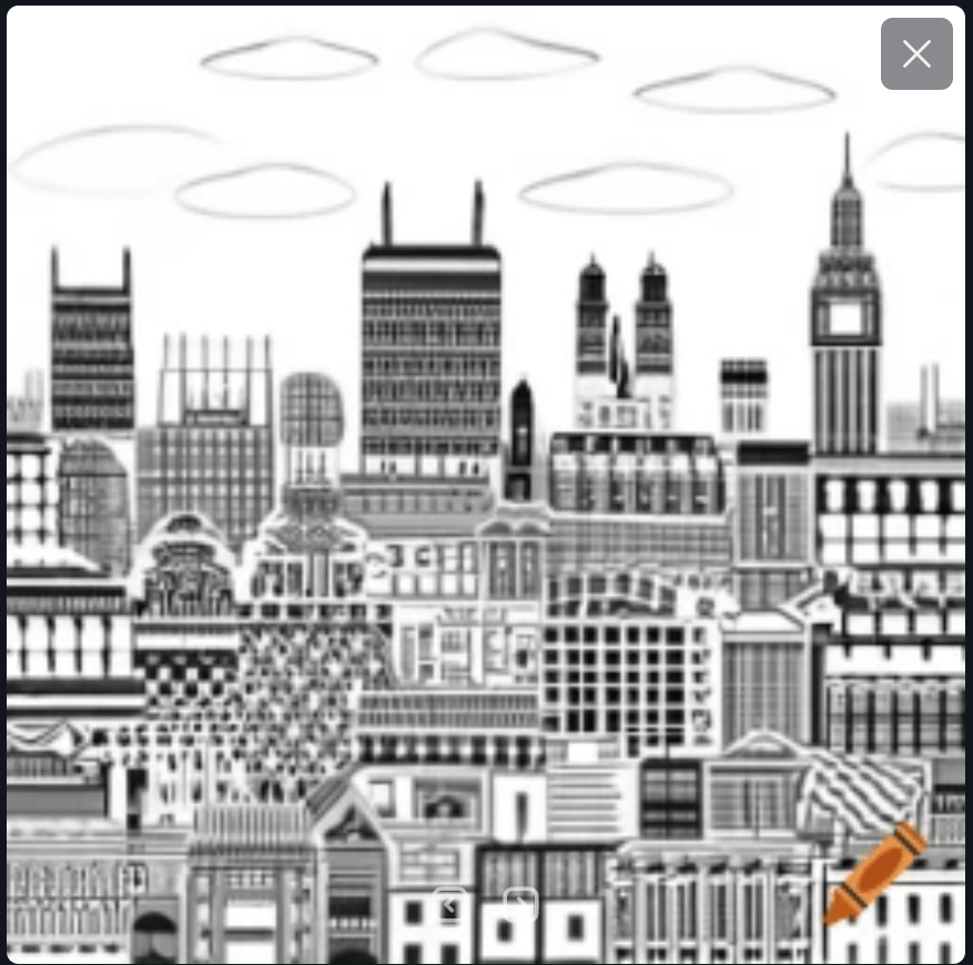 Openart.ai gave me two results that are quite similar to each other but I like them both. I like how the buildings are recognisable as London, there are a lot of patterns included, and it hasn’t gone over the top doing too much “AI weirdness.”