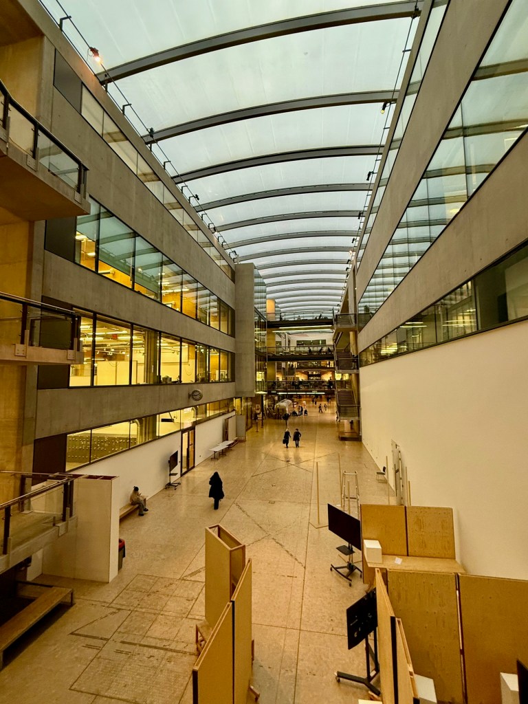 I went into the library and did some research on some resources for my Study Statement based on Constructivism. This was useful for building my bibliography but I didn’t delve into each resource in depth. I had thought that I would stay in the library for a long while, but I felt like the central atrium was calling my name. There are workspaces on each of the bridges so I decided to find a good spot and work from there.