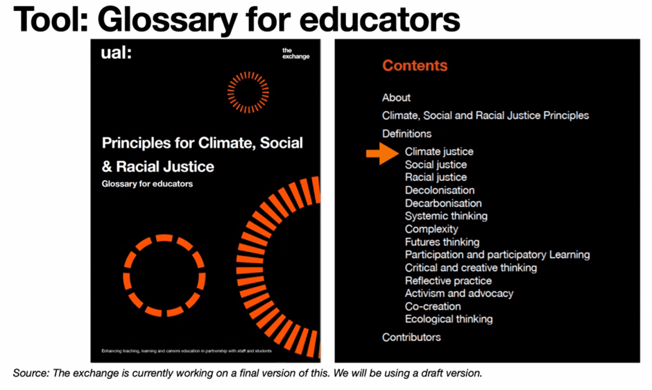 For our second Tuesday session of the term, we were joined by Monika Gravagno who works for CSM in a role to embed Climate, Racial and Social Justice into the different courses at UAL.
