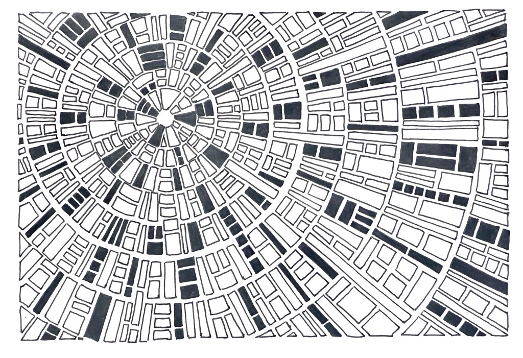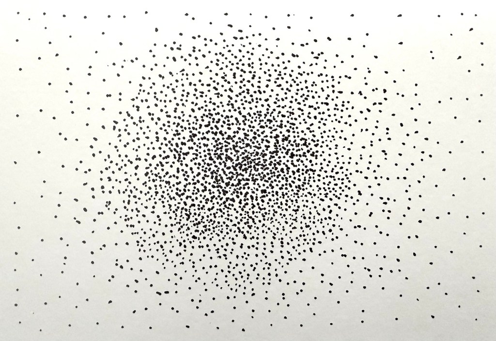Initially I had loads of ideas in my head so it was easy to start new pieces because I already knew what I wanted to do. That changed about halfway through when I had to come up with brand new ideas every day. Sometimes the prompts provided by the Artquest site helped to spark an idea, but often they didn’t. I found myself thinking ahead during the day of what I would create next. Each day I would be conscious of seeing things in my travels or online that gave me an idea. A few times I literally just started from the centre of the paper and worked my way outwards without having a definitive plan.