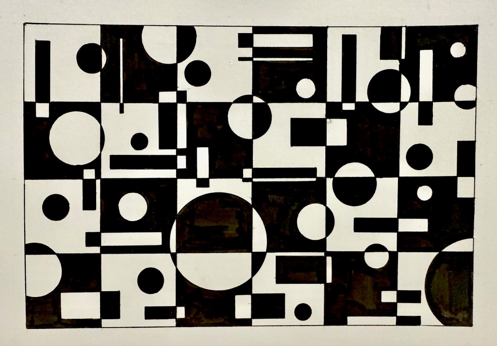 There is something about the crossing of shapes into other sections where their compositing changes that I particularly like. I am planning to make some bigger pieces that explore this further.