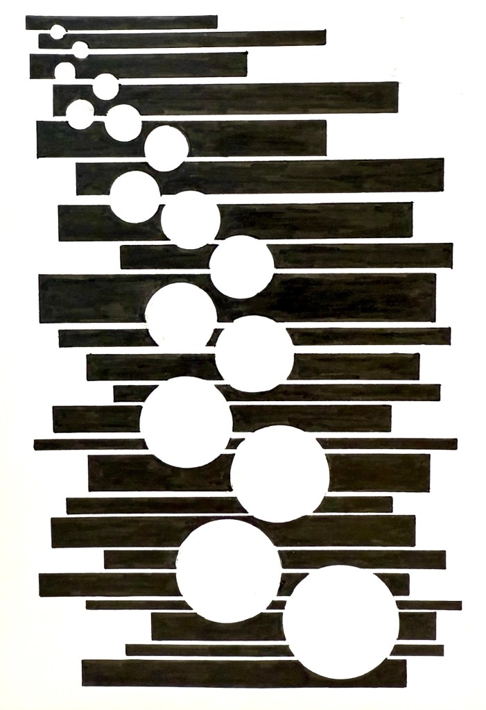 The dots piece was as a response to the prompt for that day which suggested making art while doing something else, so I created it while on a zoom call for work. I don’t mind the composition but it is so simple and obviously did not take a lot of preparation. This one did not go in the interim show.