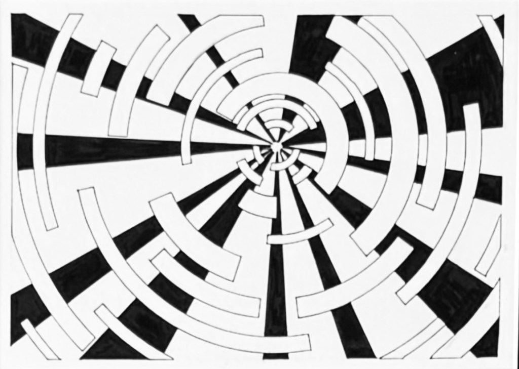I had wanted to colour in the shapes behind to make the circular pieces stand out but I ran out of time. I updated the piece after submitting: