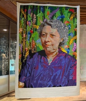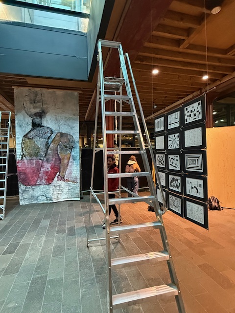 Karema’s project was going to go on two chairs. Mine was going to be hung, as was part of Debbie’s. Some pieces were on video. Some would be put on the wooden boards. Cat’s would be displayed on the floor. It was quite a complicated jigsaw puzzle to figure out what was going to go where and how.