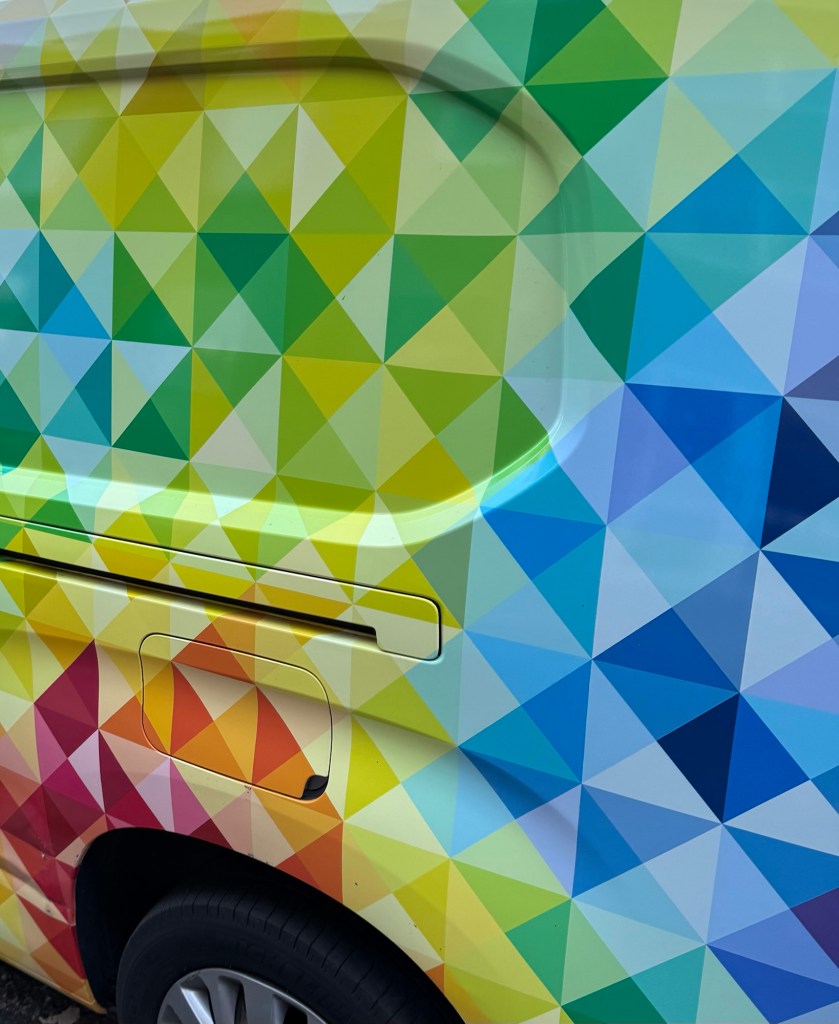Really interesting pattern on the side of a flower delivery van.