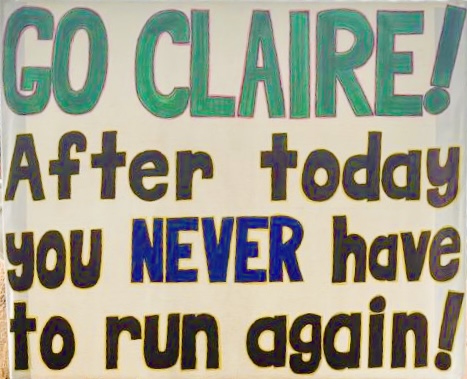 The first time we saw Claire running the race, around mile 10, she had seen the sign from far away and knew it was for her! She looked great and had a big smile on her face.