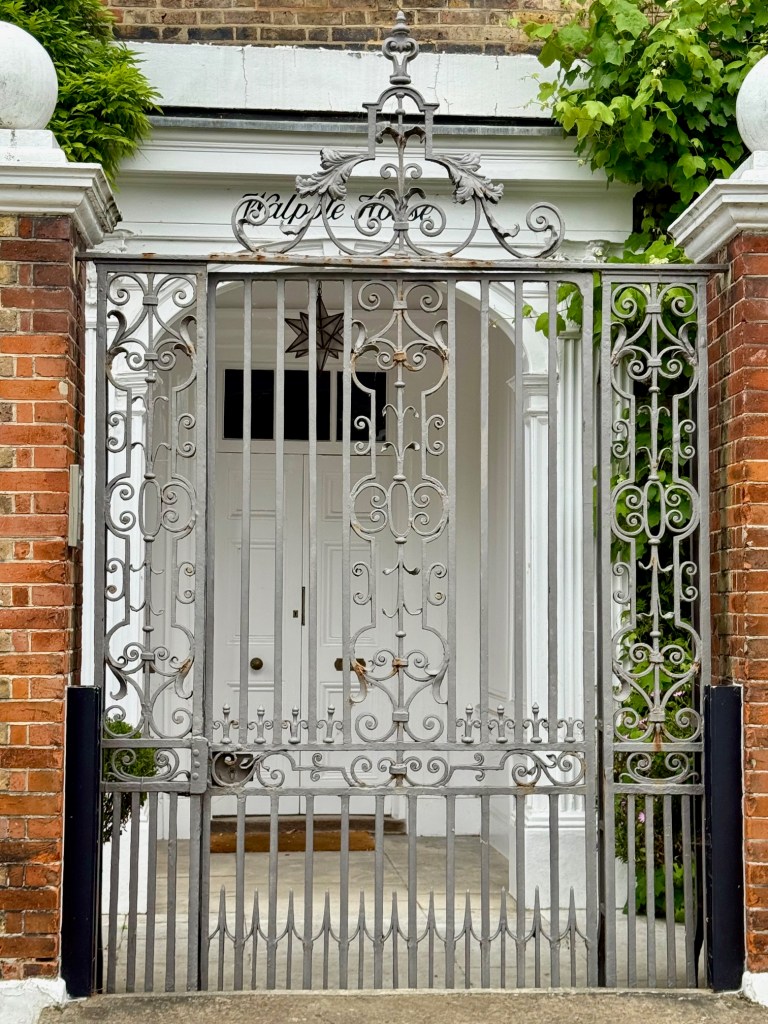 This appears to be the only photo that proves that I was actually walking along the Thames, but it was almost entirely on roads rather than directly by the water. Some of the houses face the river, but have a road in front of the house. They then have another patch of land on the other side of the road next to the water that is like their front yard. Most have gates of some kind to keep them private. This gate seems somewhat spindly to me, and lacks the heavyweight oomph of some of the others we’ve seen.