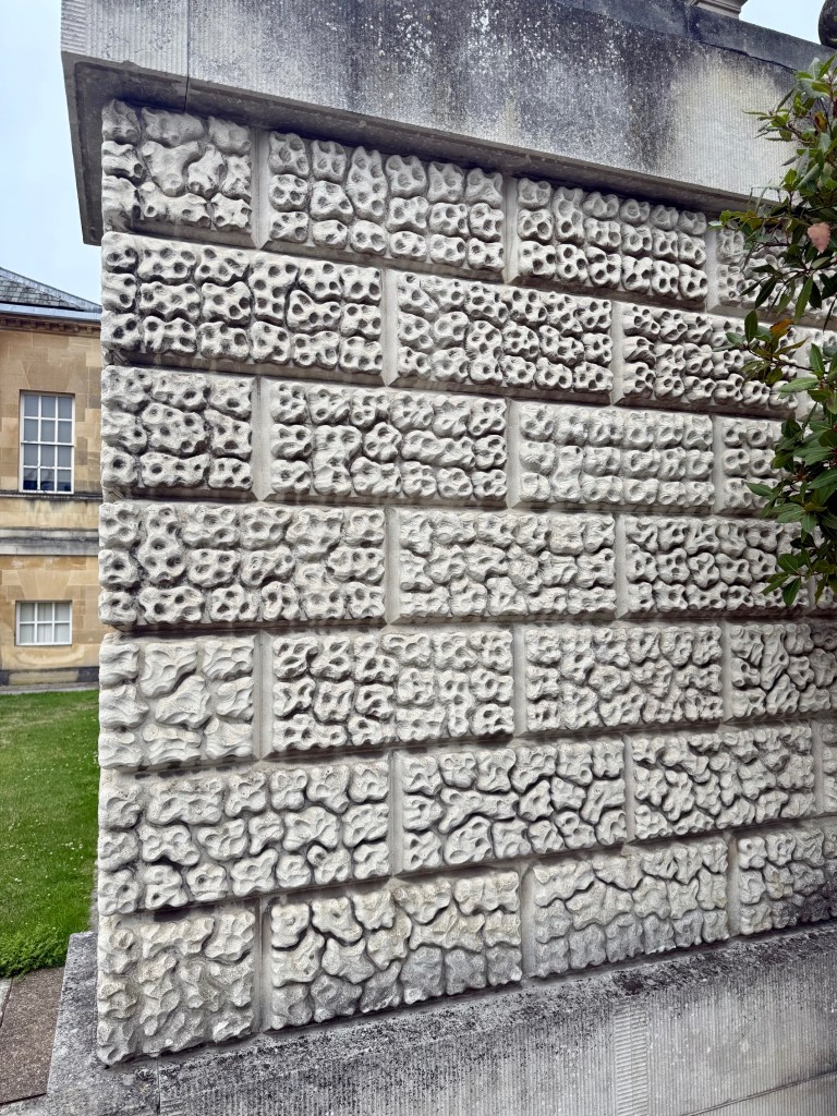This is a stone wall and I struggle to understand how (or why) it was made in this way. Each large “brick” seems to have its own pattern, but why are the lower ones less detailed than the higher ones? Have they been worn away somehow. This wall is quite far from the river so wouldn’t not be affected by high tides but maybe it is years of people and dogs going past.