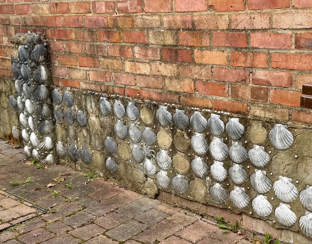 This is not exactly a pattern but I’ve walked by this wall so many times that I had to include it. It is part of someone’s driveway and is in a definite state of disrepair. I can only guess that someone created it decades ago and subsequent owners of the home have just let it go. If all of the shells were in place, it might make an attractive pattern but in its current state I don’t think it is doing the house any favours!