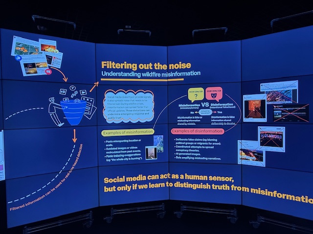 Later that afternoon Gemma was due to be hosting a session about how social media can be used to predict fires, which I thought was fascinating. We discussed how this might work and also discussed misinformation which is a key part of her PhD research.