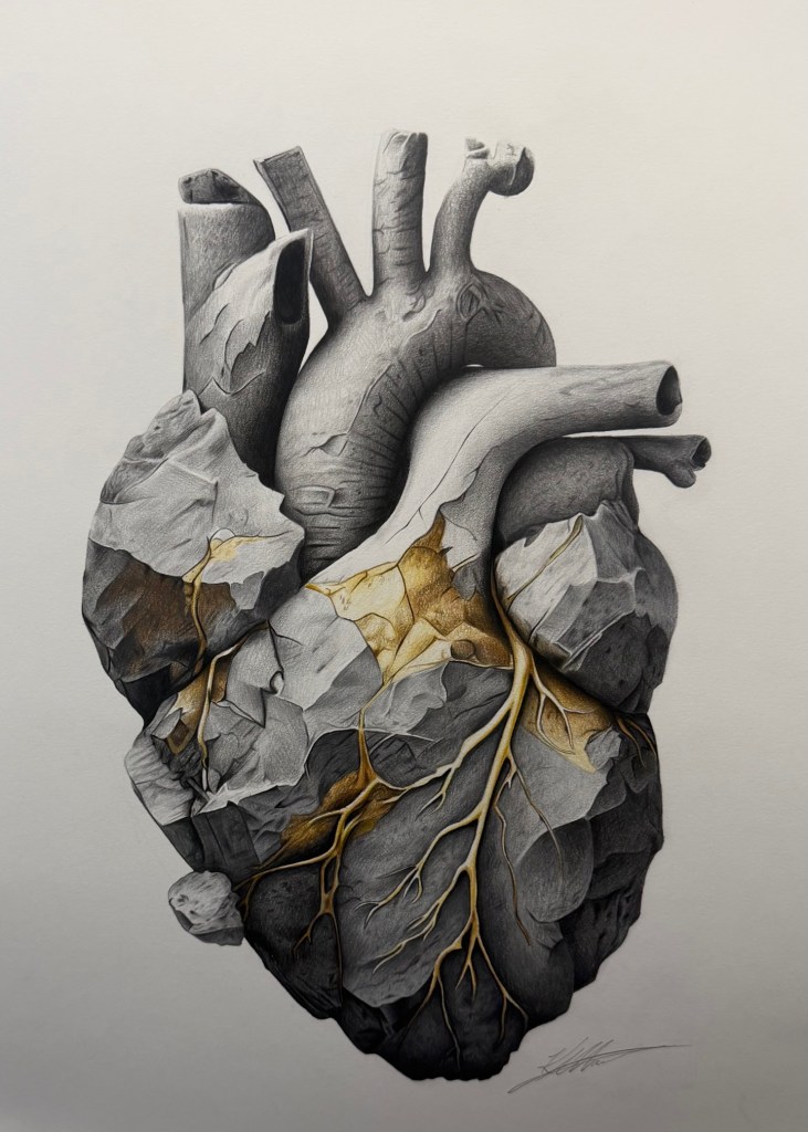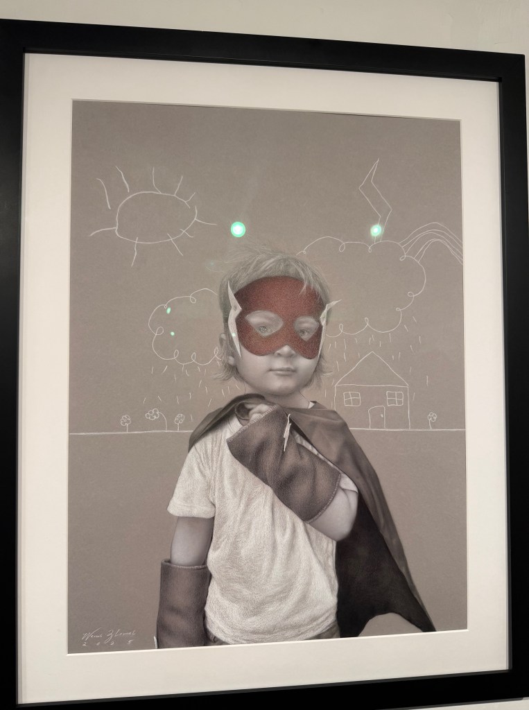 The pencil work in this piece is beautiful and understated, but I think what draws me to it is the look in the little boy’s eyes. Somehow the artist has captured a beautiful moment that portrays the boy’s knowingness, innocence, and a sense of mischievous calm all in one look.