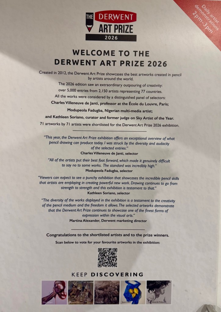 There is a voting site to choose the people’s choice award here if you are interested in seeing all of the finalists and voting for your favourite: https://www.derwentartprize-exhibition.com/vote